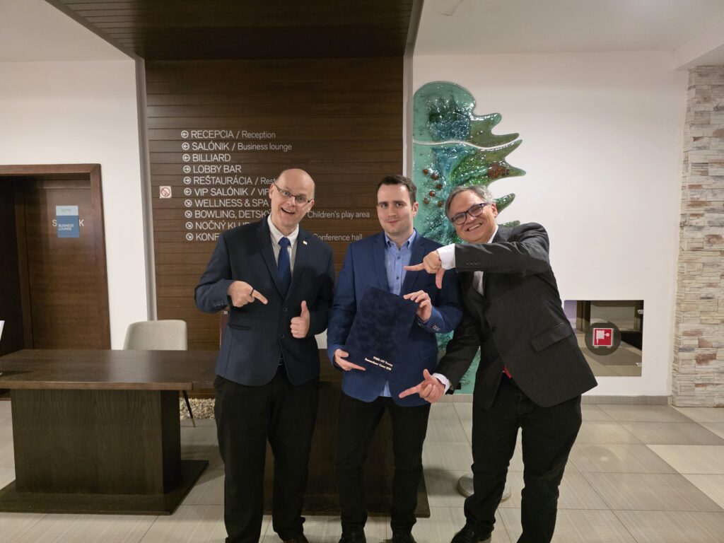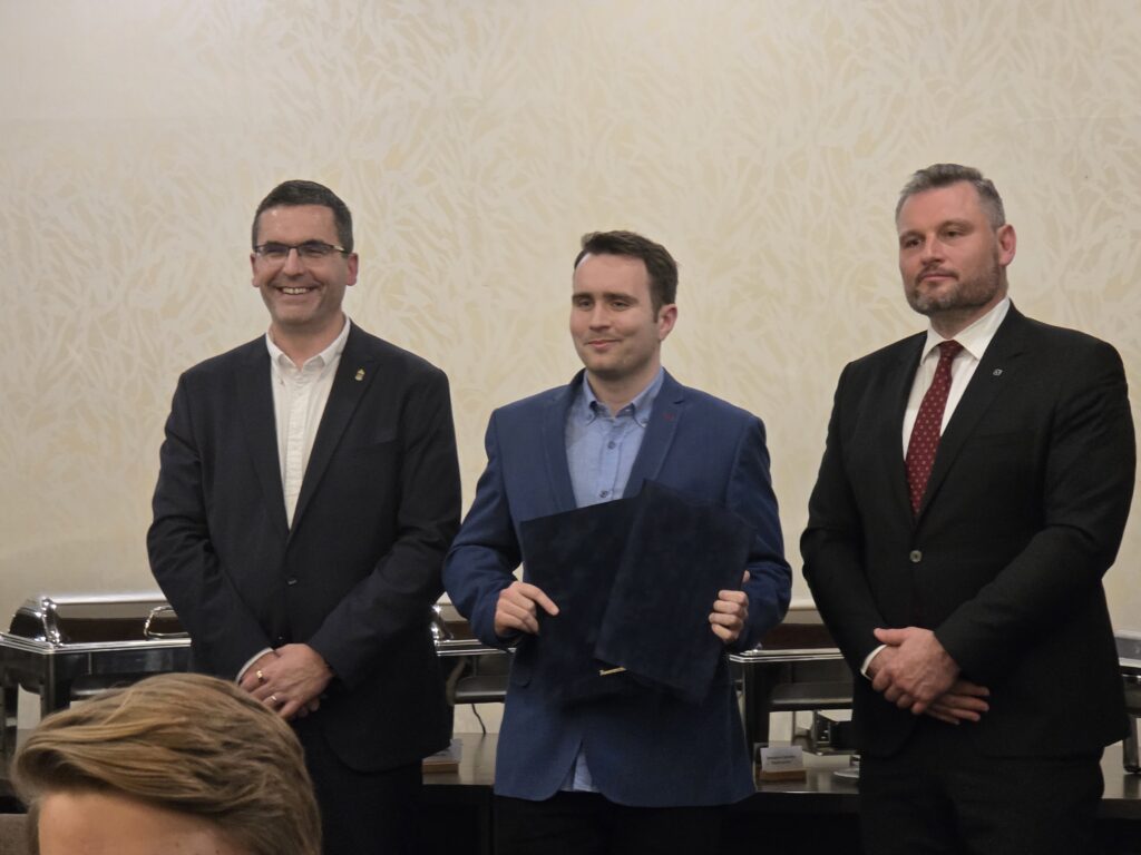 Certifikát o získaní grantu si Kristián prevzal počas medzinárodnej konferencie SAMI 2026 od rektora Technickej univerzity v Košiciach prof. Ing. Petra Mésároša, PhD., rektora Óbuda University Prof. Dr. Levente Kovácsa a riaditeľa Antal Bejczy Center for Intelligent Robotics Prof. Dr. Pétra Galambosa. Podporiť ho prišli aj vedúci katedry KPS doc. Ing. Matúš Pleva, PhD. a jeho školiteľ doc. Ing. Daniel Hládek, PhD..